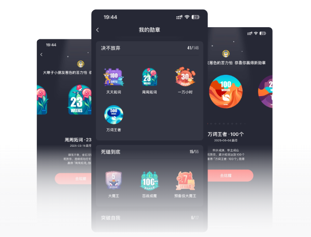 拓词“成就时刻”记录,强化正反馈,助力孩子养成良好习惯。