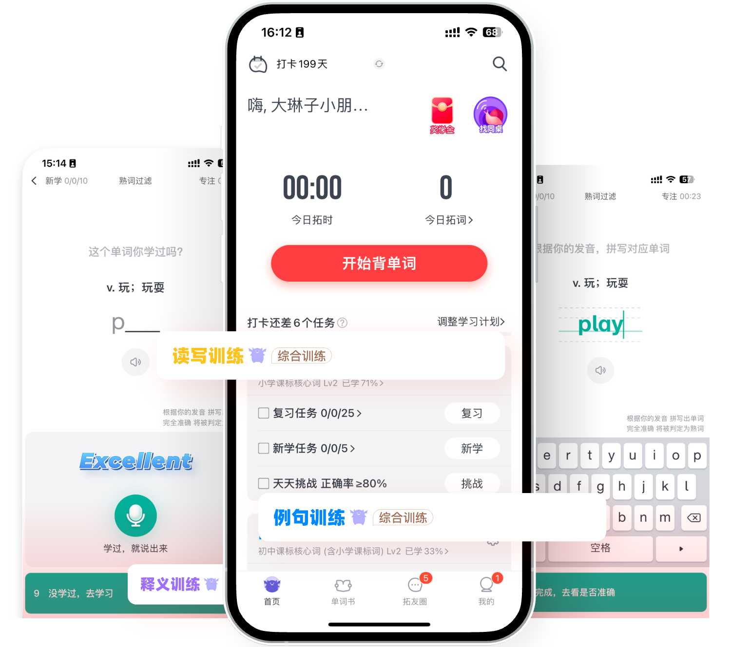 拓词通过自研的新一代单词科学学习法,首创的中小学生单词分级体系,再搭配孩子专属的学习规划服务,从而帮孩子真正实现能发音、能拼写、能听懂、能看懂,真正记住单词。